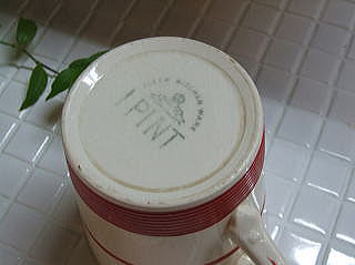 オフ白に赤のラインの陶器 ミルクジャーです。