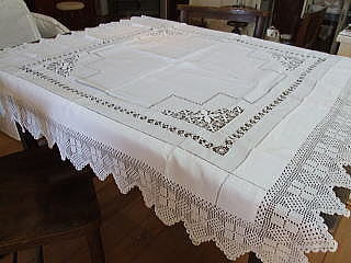 ドロウンワーク&クロシェ模様のコンビネーションが