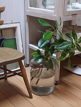 もっと春になってからカットしたら良かったのでしょうね! 家の中に入れて置いた フランスゴムの木。 あまりにも あちこちに枝が伸びてしまっていたので、カットしてしましました。 元気な根が出てくれたらいいな~と...........。 ガラスビンの中の枝もお気に入りです! そうそう、先日のお台所の道具?に植えた多肉植物。 思いがけず 気に入ってくださった方がけっこういらして とても嬉しいです! また いろんなカタチを楽しめたらと思っています。 |
