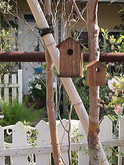 先日お邪魔しました 素敵なお庭づくりをしているHさんから こんな素敵なバードハウスを頂きました! 「好きそうでしょう!」と作ってくれたのです! とても嬉しいです! さっそく ヒメシャラの枝に付けてみました。 とてもお気に入りです♪ |