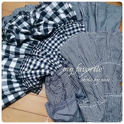 やっぱり外せない ギンガム ♪ 黒のブロック、、ティアードのスカート 以前はたくさん活躍してたけれど・・ ときには はいてみよう~? |