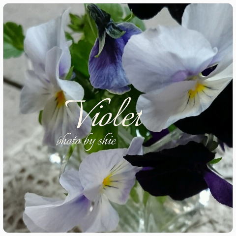 庭のビオラを摘んで、、 テーブルに飾ってみました♪ |